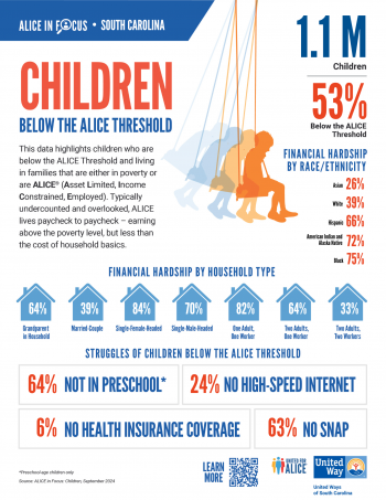 Download the 2024 ALICE in Focus: Children in Financial Hardship report brief for South Carolina